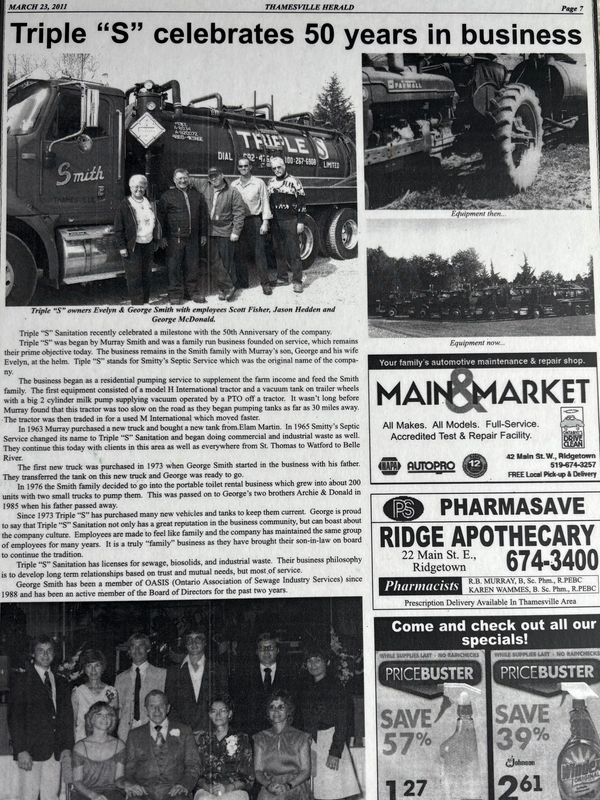 Triple “S” was founded by Murray Smith, who started the business as a small residential pumping service to help supplement the farm income and provide for the Smith family. What began as a simple addition to farm life soon became an important part of the community.